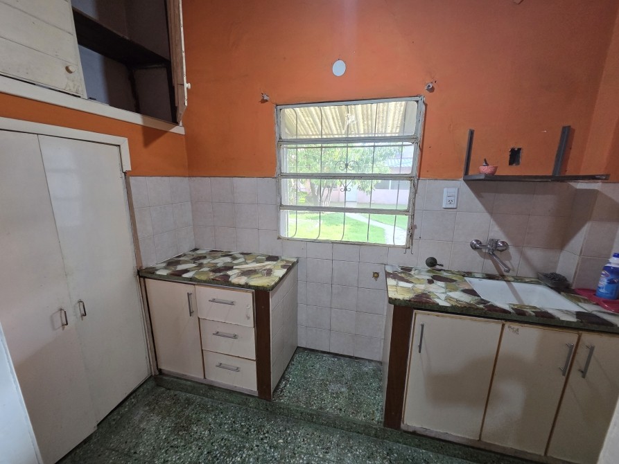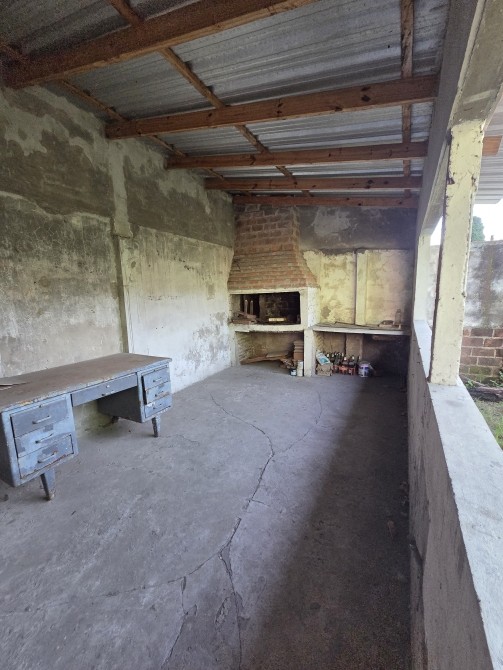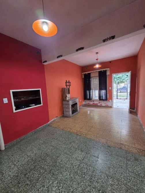 EDIFICADA SOBRE AMPLIO LOTE CUENTA CON JARDIN AL FRENTE; LIVING COMEDOR CON HOGAR (SIN FUNCIONAMIENTO) Y COCINA PSEUDOINTEGRADA CON BAJO Y SOBRE MESADA (SIN ARTEFACTO); DOS DORMITORIOS; BAÑO COMPLETO Y GARAGE PARA VARIOS AUTOS Y PASANTE; FONDO LIBRE Y QUINCHO (FALTAN TERMINACIONES) CON PARRILLA.