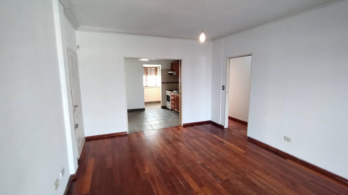 LIVING COMEDOR CON PISOS TARUGADOS, AIRE ACONDICIONADO, ESTUFA Y PUERTA EN MADERA Y VIDRIO REPARTIDO HACIA LA COCINA COMEDOR DIARIO, CON BAJO Y SOBRE MESADA EN MADERA; LAVADERO CON BALCON SEMICUBIERTO; DOS DORMITORIOS CON PISO PARQUET, PLACARD CON INTERIORES Y AIRE ACONDICIONADO; BAÑO COMPLETO CON BAÑERA Y ACCESORIOS; AMPLIO BALCON AL FRENTE.