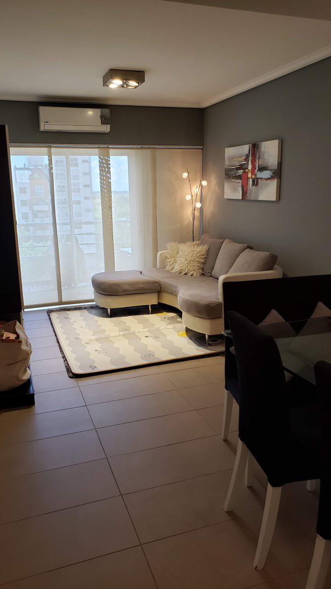 LIVING COMEDOR PISOS PORCELANATO, AIRE ACONDICIONADO Y AMPLIO VENTANAL CON SALIDA A AMPLIO BALCÓN; COCINA CON DOBLE MESADA CON SECTOR DE LAVADERO, ANAFE Y HORNO EMPOTRADO, MUEBLES BAJO Y SOBRE MESADA DE AMPLIO PORTE; SECTOR DISTRIBUIDOR A DORMITORIO PRINCIPAL AMPLIO CON AIRE ACONDICIONADO, PLACARD CON INTERIORES, PISO FLOTANTE Y BALCÓN; SEGUNDO DORMITORIO AMPLIO CON PLACARD CON INTERIORES; BAÑO CON BAÑERA, MAMPARA, SANITARIOS, ACCESORIOS COMPLETOS Y VENTILACION Y LUZ NATURAL.